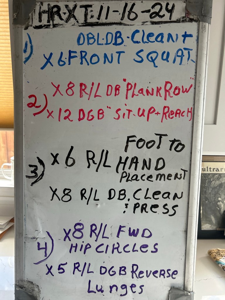 11/16/24 SATURDAY. SATURDAY HR/XT/MOBILITY/SWINGS/LOADED CARRIES. Cancelled for today. There will be no workout this day due members being out of town or have made alternative plans. I’m checking on holding intro session for new people at Warren’s.