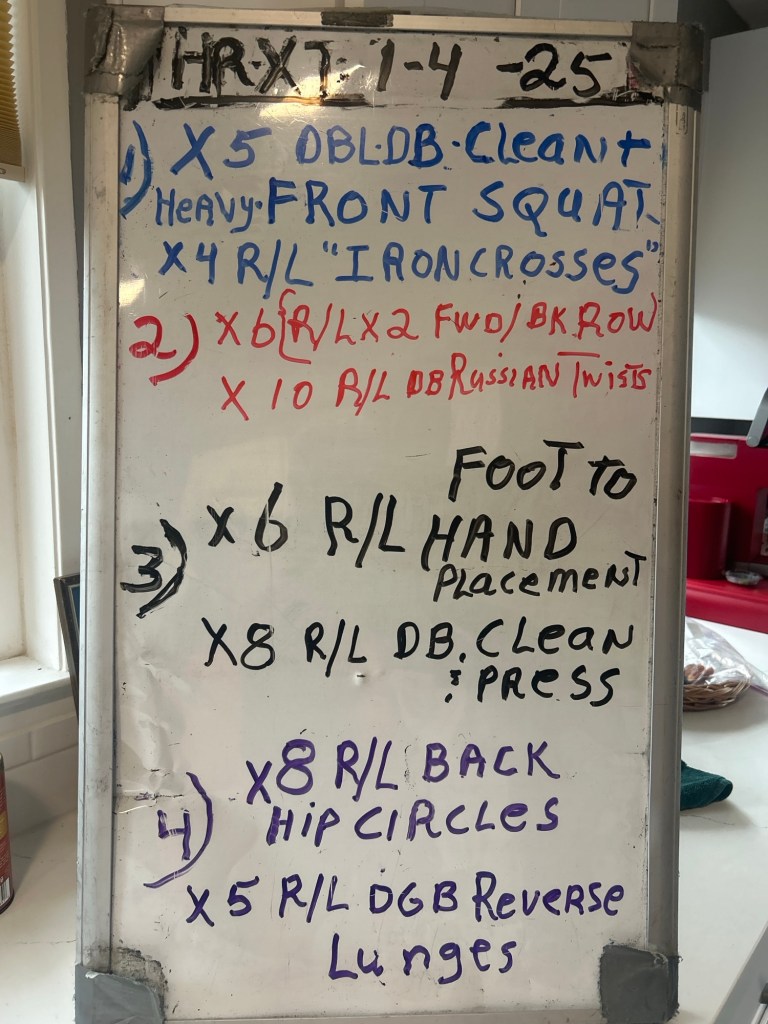 1/4/25. SATURDAY. HR/XT/MOBILITY/LOADED CARRIES/SWINGS/CLEAN & PRESSES/DEADLIFTS. 9 AM in LOT C at Olivet Seminary College ( 201 Seminary Drive, MV /Strawberry area). I will open chain gate by about 8:40 AM so I can set up the exercise stations and you can all get in your warm-up run or calisthenics with short run.
