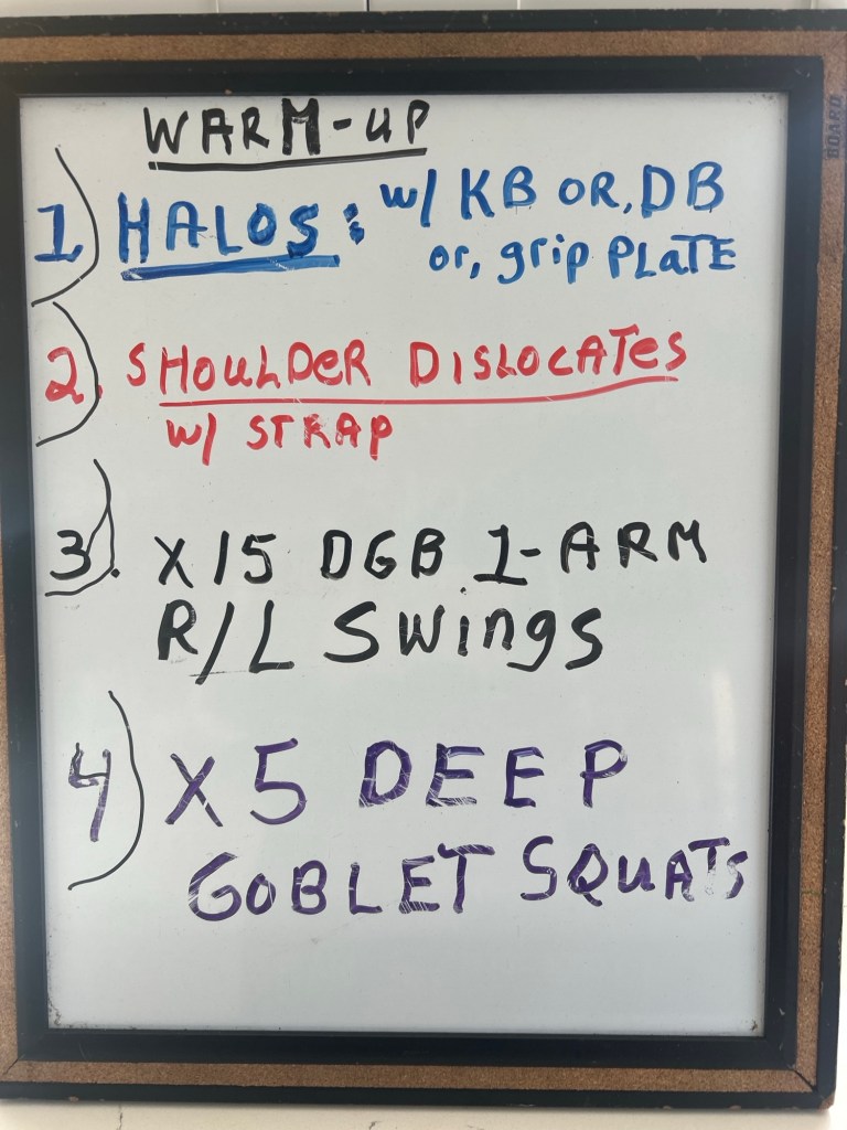 1/15/25 WEDNESDAY. STRENGTH TRAINING CIRCUIT/SWINGS/MOBILITY/ CARRIES/DEADLIFTS. 8 AM at Warren’s and get in your mobility work for shoulders and hips, 60 swings; then the Circuit and you’ll finish with Deadlifts.