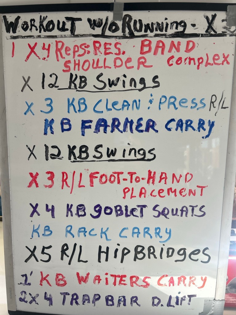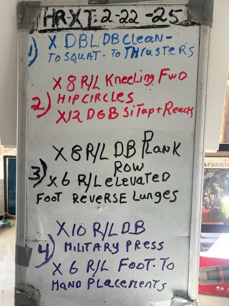 2/19/25 WEDNESDAY. STRENGTH TRAINING CIRCUIT/ SWINGS/MOBILITY/DEADLIFTS. 8 AM at Warren’s for two rounds of the Circuit. Warm-up and mobility exercises, 60 Swings; then the Circuit.
