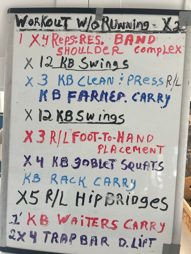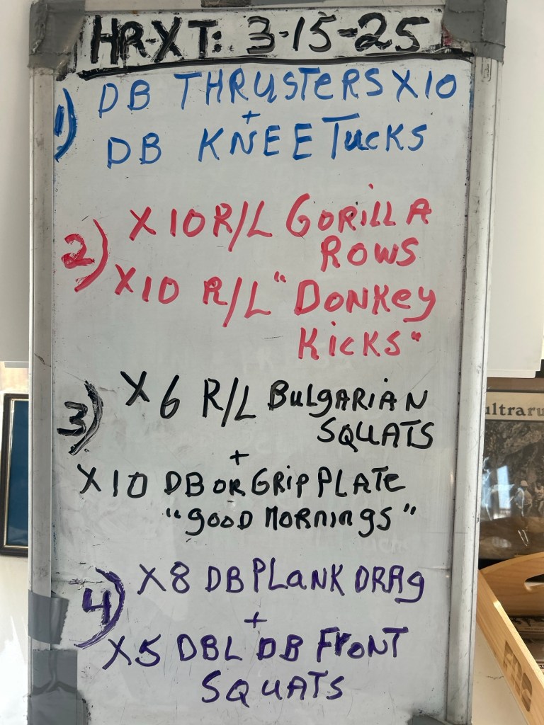3/12/25 WEDNESDAY. STRENGTH TRAINING CIRCUIT/SWINGS/MOBILITY/LOADED CARRIES/DEADLIFTS. 8 AM at Warren’s gym. ( I have the Circuit Station Cards there for you). Two rounds of the Circuit after the 50 KB Swings; finish with 4 x 4 Deadlifts. Minimize talking during the Swings and Circuit, of course: need to focus on technique and controlled breathing.