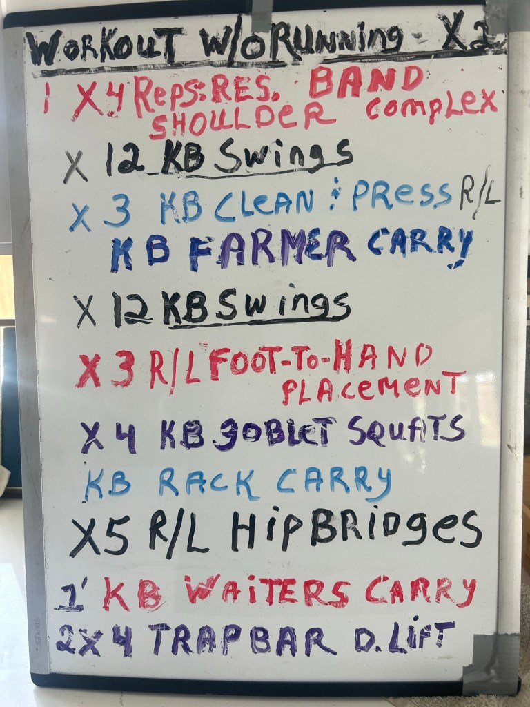 4/9/10 WEDNESDAY. STRENGTH TRAINING CIRCUIT/ SWINGS/MOBILITY/KB TRAINING/DEADLIFTS. Two rounds of the Circuit after 50 KB Swings; finish with deadlifts.