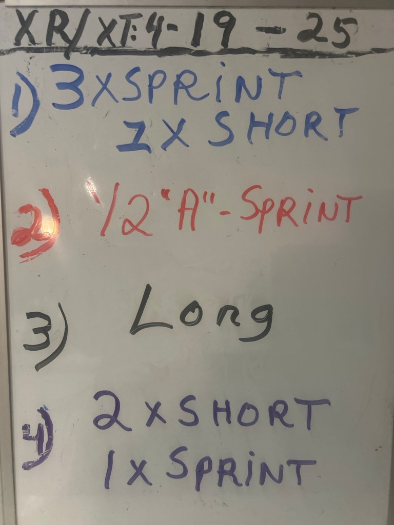 4/17/25 THURSDAY. SPEED-WORK at your local track. After your “5K Predictor” last week, we’ll return to shorter intervals to emphasize leg speed and CV fitness. After the mile warm-up, 6 x 30 meter quick pick-ups: