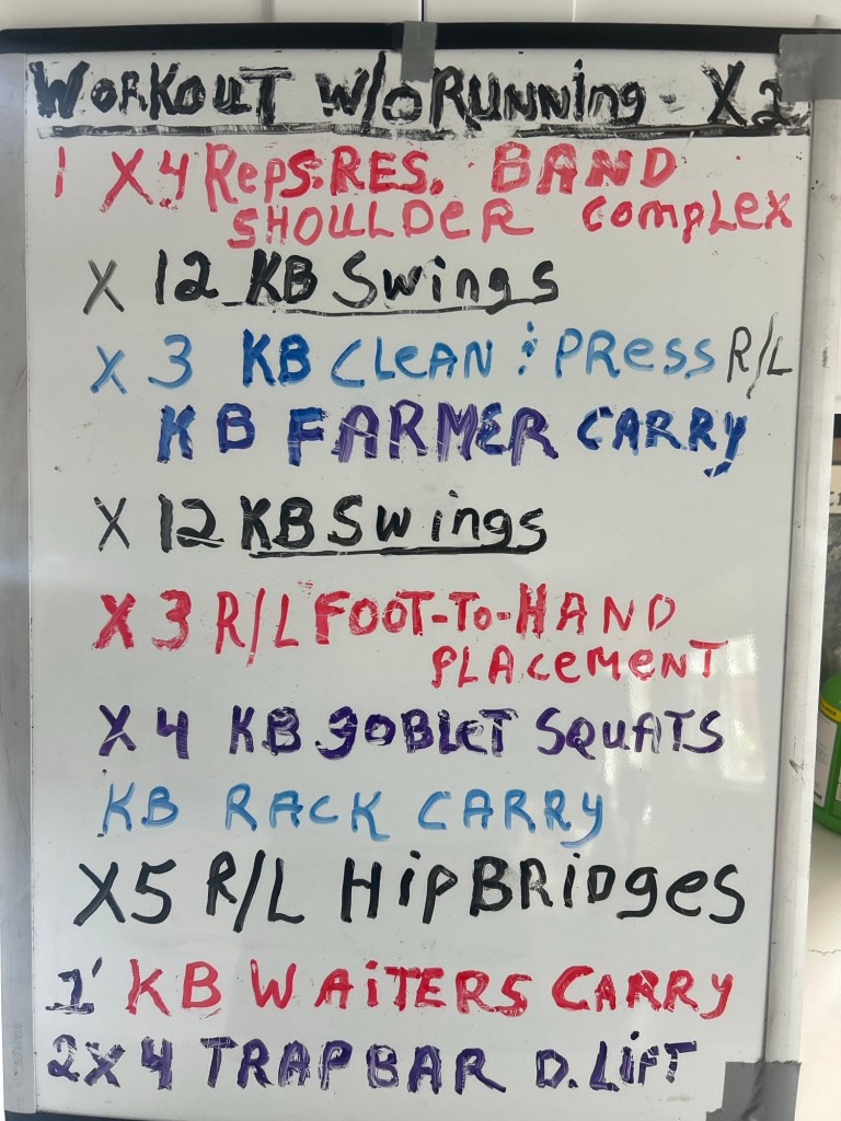 4/23/25 WEDNESDAY. STRENGTH TRAINING CIRCUIT/SWINGS/MOBILITY/ DEADLIFTS. 9 AM. at Warren’s. Get in your warm-up ( I’ll have a white board with the routine).