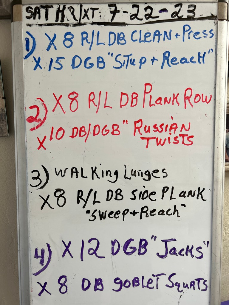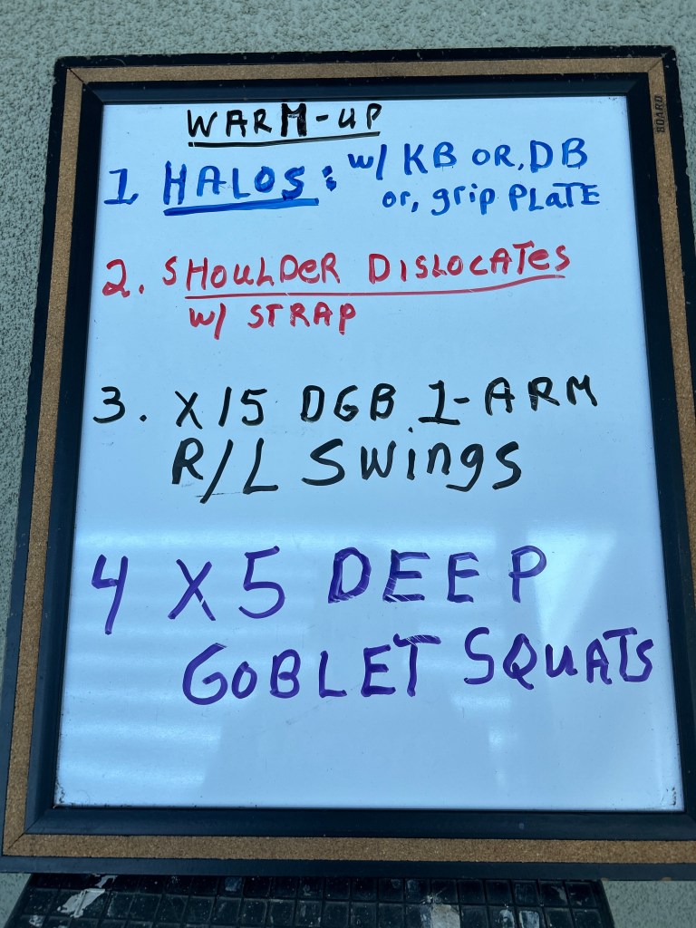 8/23/23 WEDNESDAY. STRENGTH TRAINING CIRCUIT/SWINGS/ TRAP BAR DEADLIFTS. 8:15 AM Start at Warren’s gym. We’ll warm-up with mobility exercises, 10-20-15-15 Swings; then do the Circuit and finish with 3 x 3-4 reps of Trap Bar Deadlifts.