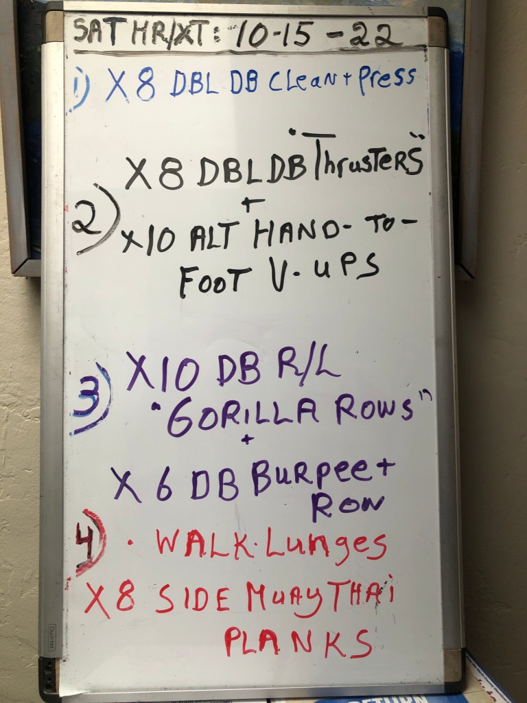 10/12/22 WEDNESDAY. KB Swings – STRENGTH TRAINING CIRCUIT – Trap Bar DL. 8:15 AM start. Arrive 8’ish to get in mobility exercises prior to the swings. 4 x 15 Swing reps OTM