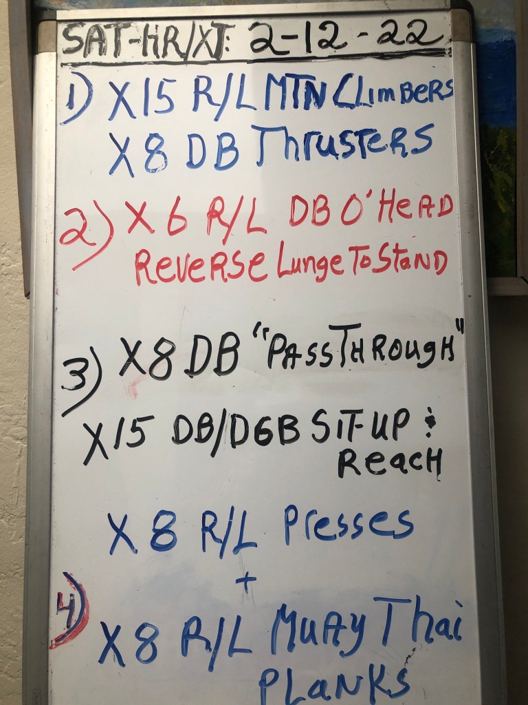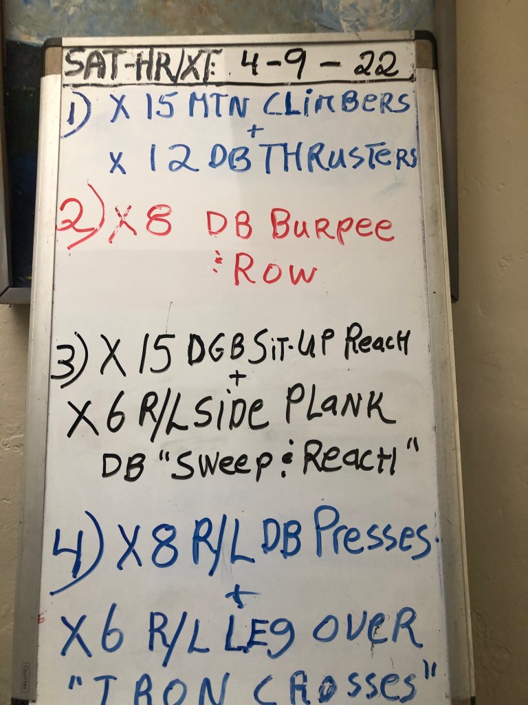 NOTE: I will NOT have the Saturday HR/XT/LOADED CARRIES/SPRINTS workout on 3/19/22 due to four of us going to the KB 101 Workshop early that morning in Oakland.