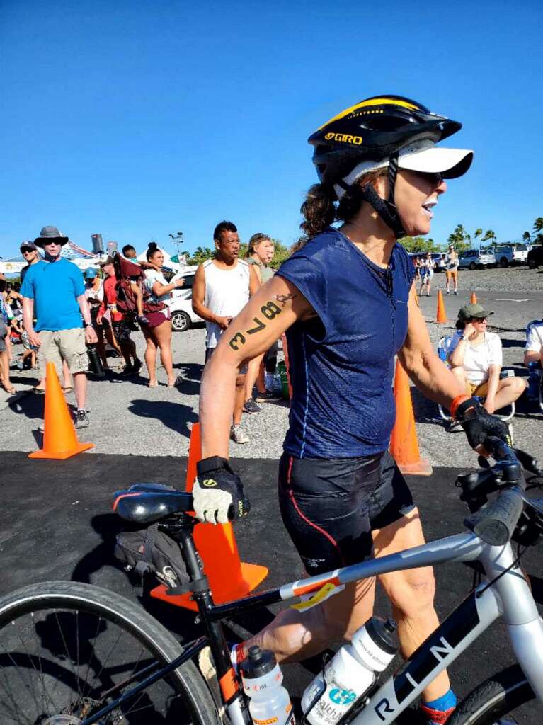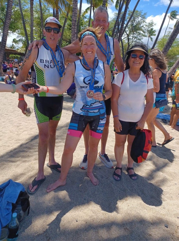 Dave, Kathleen, Kevin Lelani after the windy Lava Man TriathlonJudi at transition!