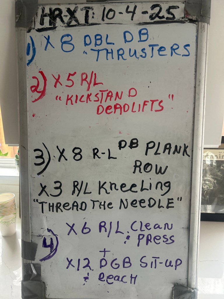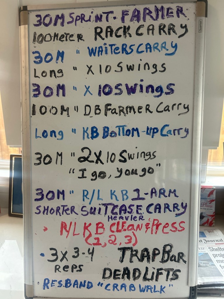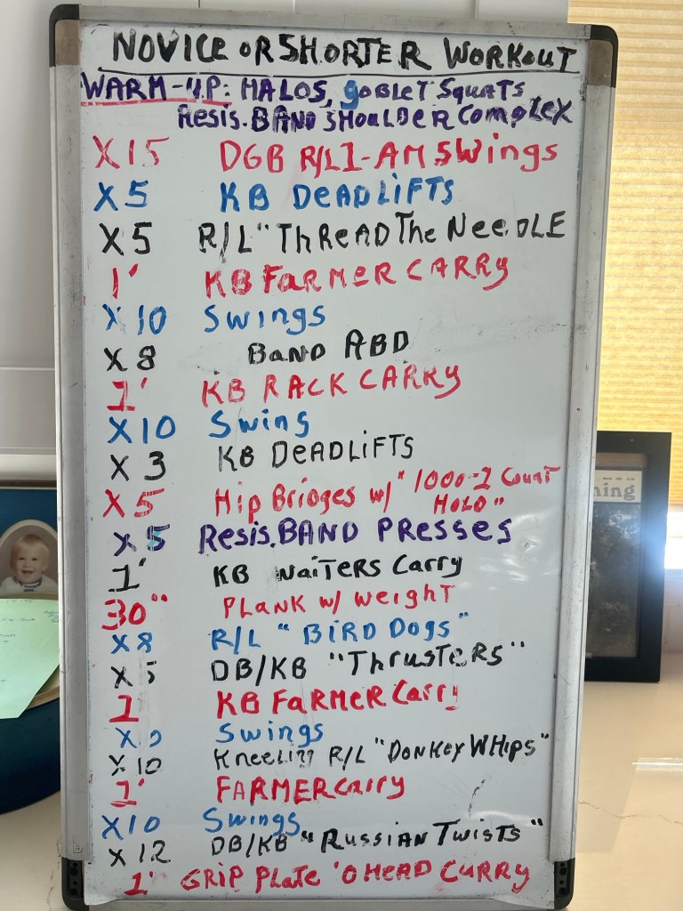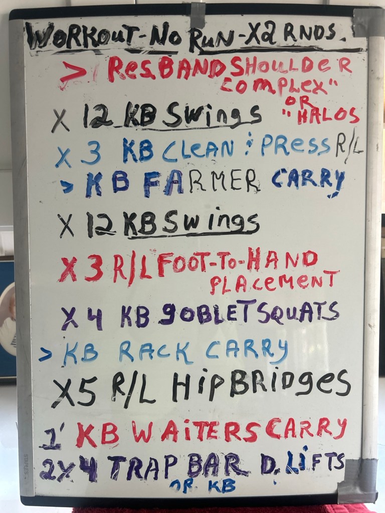 10/15 25 WEDNESDAY: STRENGTH TRAINING CIRCUIT/ MOBILITY/SWINGS/KB LIFTS/ DEADLIFTS. 8 AM at Warren’s Gym. You’ll be on your own this Wednesday as Sandy and i have Tue/Wed grandparent duty. This means be extra careful to avoid injuries while doing the KB Swings and deadlifts. Warren won’t return until the 16th..